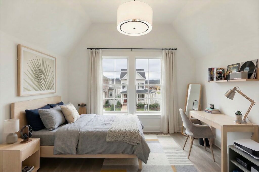 Highly anticipated and sought-after community, Fairington, is now selling! READY IN 30 DAYS or LESS. This thoughtfully designed 4~ bedroom, 4 ~ bath home features three bedrooms on the main floor, including a luxurious primary suite with a tray ceiling, spa-like bath, and oversized walk-in closet. Hardwood floors span the main living areas, complemented by high-end finishes, custom wood beams, built-in closet shelving, and tile surrounds in all baths. The exceptional laundry room offers abundant cabinetry and storage. Upstairs, you’ll find an oversized bonus room with flexible space ideal for a home office, homework station, or craft room, along with a private guest suite. Additional unfinished walk-in storage provides even more room for organization or future expansion. Enjoy outdoor living on the large, covered porch, and appreciate the backyard that opens to peaceful greenspace. The front-entry garage enhances curb appeal and functionality. From the visionaries behind Westhaven, Southern Land Company proudly introduces Fairington a stunning new master-planned community offering luxury homes, exceptional future amenities, walkable shops and dining, and so much more. Please see images and attachments for additional details about this beautiful home and the exciting new Fairington community. We invite you to visit our model home onsite to learn more!